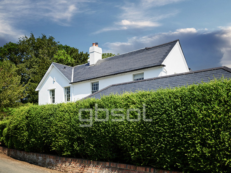 PV Slates combine seamlessly with natural blue-grey slates to make solar power from a traditional-looking roof. They are both lighter and stronger than traditional slates, yet can work alongside them to be cost effectively fitted on any new slate roof.
