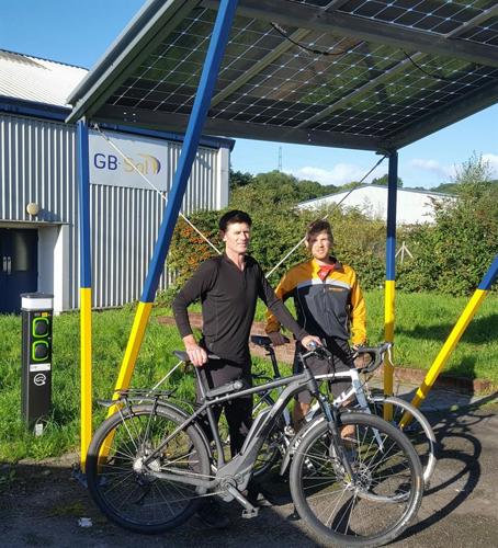 The Technical Team at GB-Sol are always thinking about energy but not always solar! Andrew and Bryn have taken to pedal power for their 20mile round trips to our Treforest factory, both enjoying the many cycle paths that link our workplace to their homes. Andrew charges his electric bike at work using our very own solar power, made and generated on site. Andrew says “The electric bike gives me a boost up the hills and avoids any congestion on the way to work”. GB-Sol have various ways of integrating solar PV and electric vehicle charging, contact us to talk about your project.
